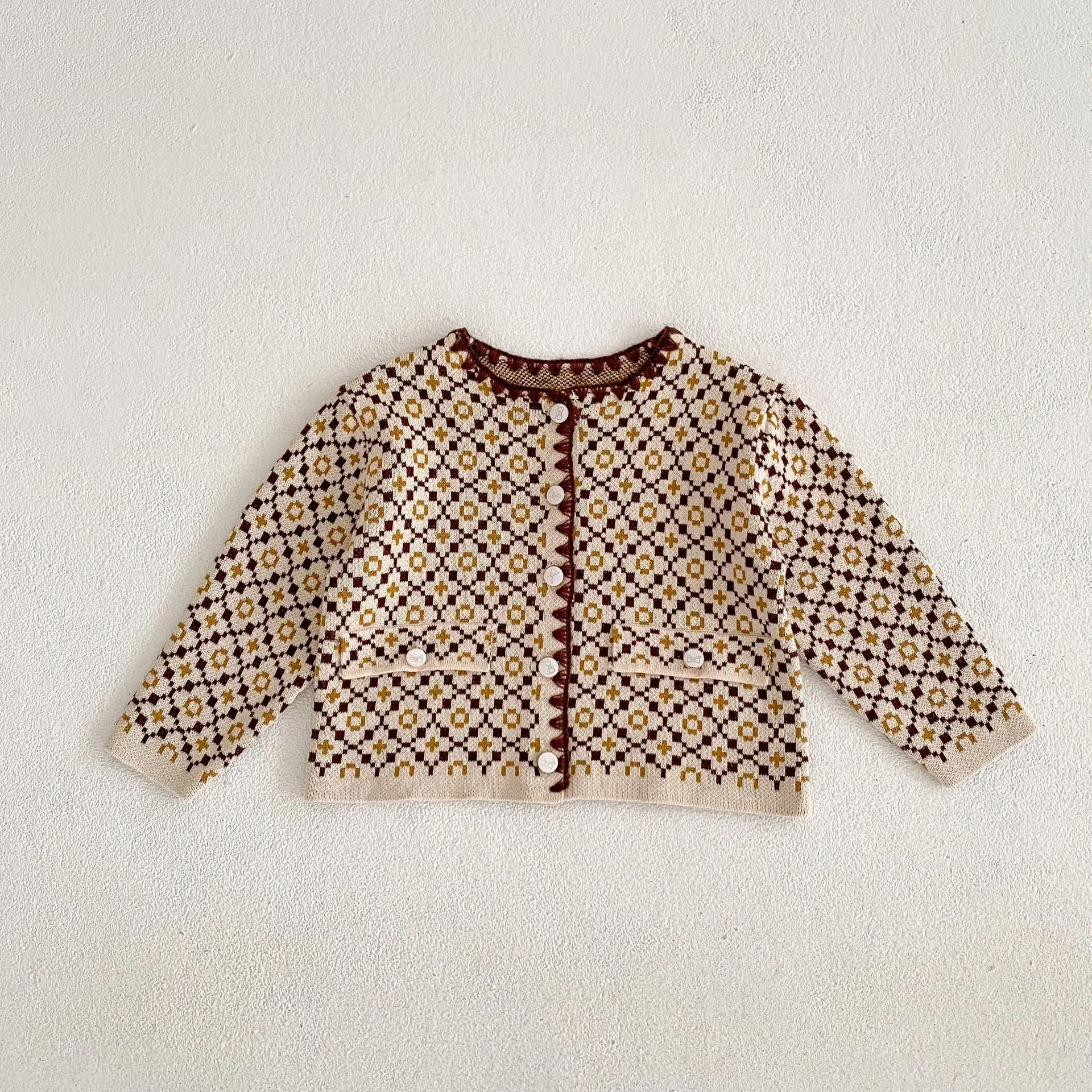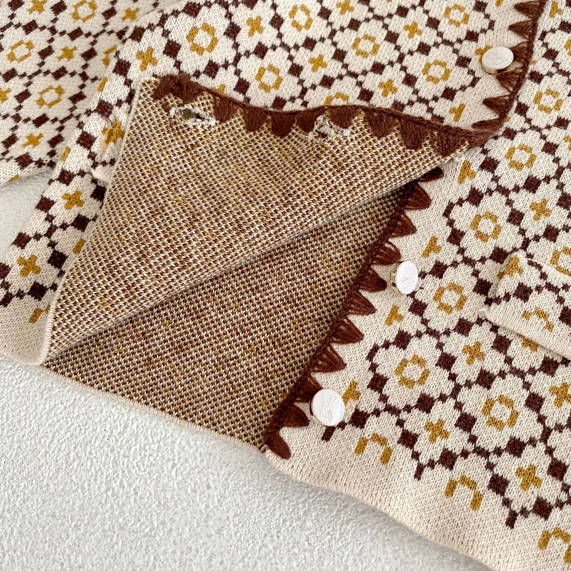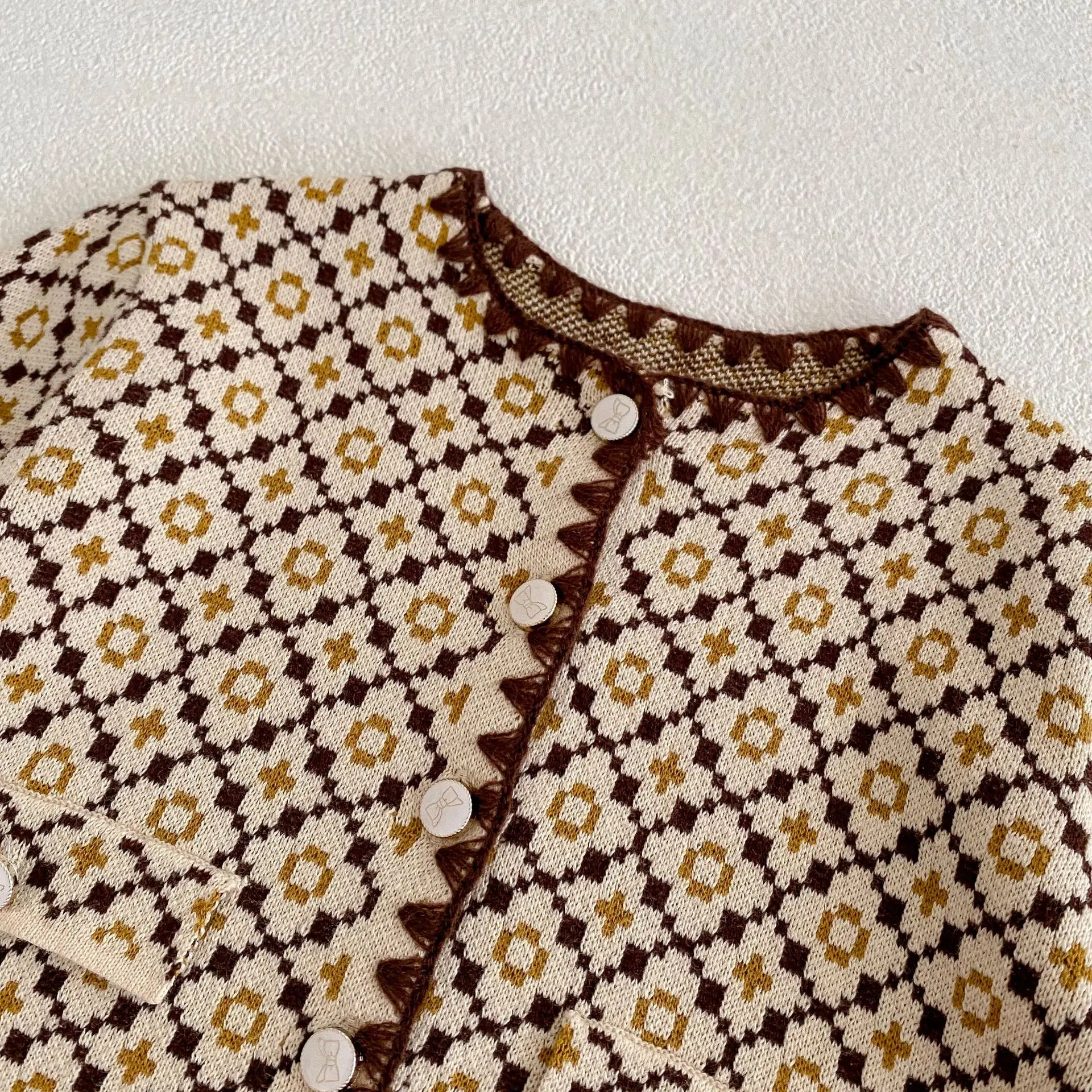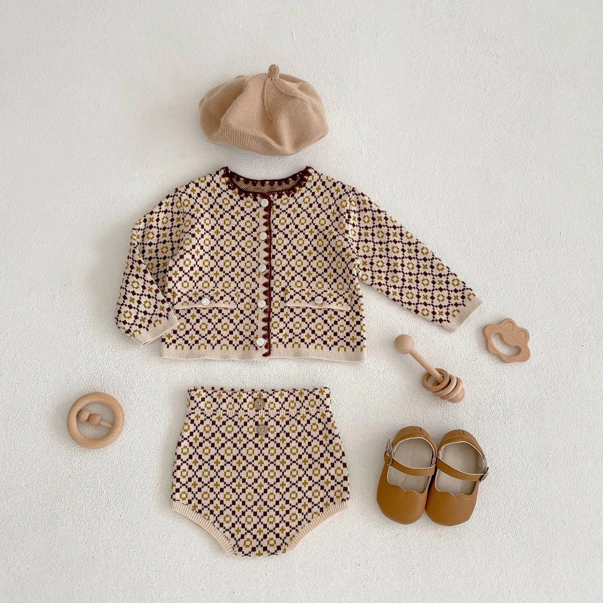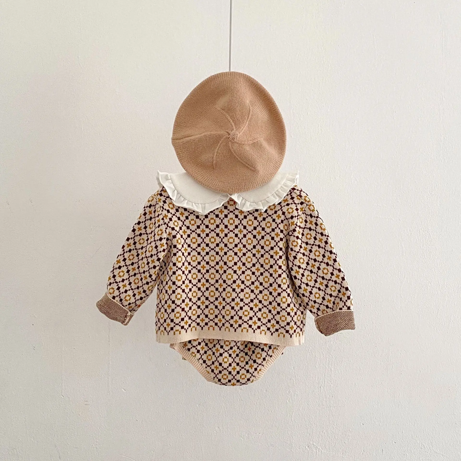 2022 Sprin Autumn Girl Knitting Broken Flower Sweater Suit Infant Long