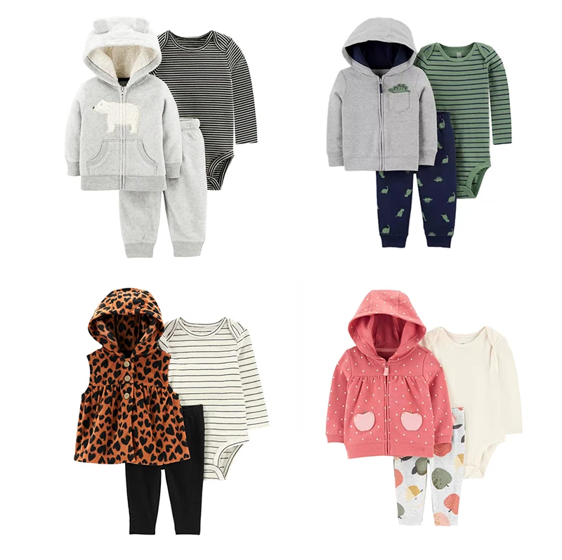 Ircomll Spring Autumn Winter Infant Baby Clothing Set Thickened Fleece Baby Coat+Baby Pants+Baby Bodysuit Suits Outfits